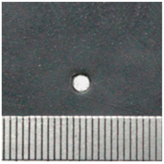 A photograph of prefabricated coating damage points drilled only through the coating (The scale is 1 mm).