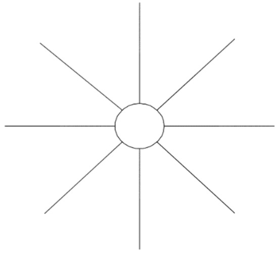 A schematic of the measurement pattern of the cathodic disbondment area of the polyethylene (3PE) coating.