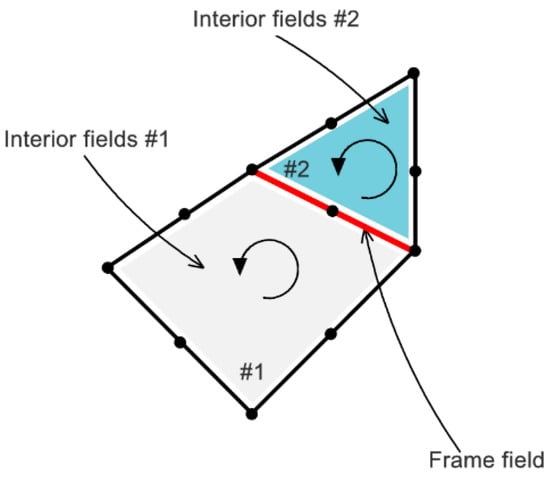 Because the interior fields are independently defined for adjacent elements, i.e., element #1 and #2 in Figure 4, they should be weakly linked through the common interface. In order to enforce the conformity on the common interface of adjacent elements, the element frame temperature field can be defined in terms of the generalized nodal temperature vector de = {di}T (i = 1, ∙∙∙, nd) as