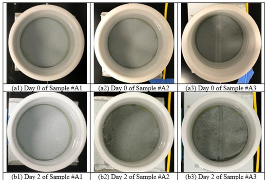 As seen in Table 1, three polymeric coating (Samples #S1–S3) were tested using embedded FBG sensors, respectively. The polymeric coating used in the test was epoxy resin (Duralco 4461, provided by Cotronics Corp., Brooklyn, NY, USA), which is clear in color and belongs to the amine complex [50]. The applied epoxy resin cured in room temperature within 16 h. After FBG sensor was attached on the surface of the substrate, one layer of epoxy was applied on top of the substrate with thickness approximately of 2 mm. After the epoxy was fully cured, the PVC pipes were fixed on top of the location of sensor followed by filling with 3.5 wt % NaCl solution to create corrosive environment, as seen in Figure 2. The accelrated corrosion tests for the polymric coating had a run for 6480 h (270 days).