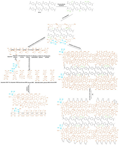 - Wang, W.; Li, R.; Tian, M.; Liu, L.; Zou, H.; Zhao, X.; Zhang, L. Surface silverized meta-aramid fibers prepared by bio-inspired poly(dopamine) functionalization. ACS Appl. Mater. Interfaces 2013, 5, 2062–2069. [Google Scholar] [CrossRef]