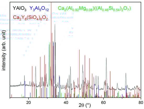 In both processes, a spray-dried YAlO3 powder with a particle size of 37 µm and a purity of 96% was used. X-ray diffraction (XRD) measurements (Figure 2) revealed the presence of Y4Al2O9 and Y3Al5O12 as secondary phases.