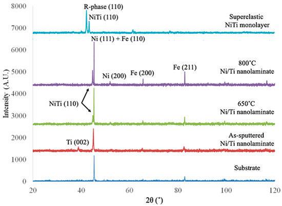- Behera, A.; Aich, S. Characterisation and properties of magnetron sputtered nanoscale bi-layered Ni/Ti thin films and effect of annealing. Surf. Interface Anal. 2015, 47, 805–814. [Google Scholar] [CrossRef]