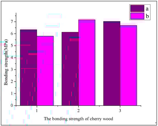 Cherry wood, Prunus serotina, Ehrh., with dimensions of 210 × 25 × 10 mm3, was obtained from Xiamen Golden Kitchen Cabinet Co., Ltd. (Xiamen, China). Cherry wood was thermo-treated at 160 °C for 3 h, making sure that there was enough water in this process. Cherry wood used for surface wettability was first thermo-treated, and then cut into 100 × 18 × 10 mm3 pieces. However, cherry wood used for the bonding strength test was cut into 30 × 25 × 5 mm3 pieces (according to GB/T 17517-1998 [19]) and this wood included thermo-treated and non-thermo-treated samples.
