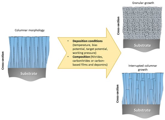 - Vetter, J.; Stüber, M.; Ulrich, S. Growth effects in carbon coatings deposited by magnetron sputtering. Surf. Coat. Technol. 2003, 168, 169–178. [Google Scholar] [CrossRef]