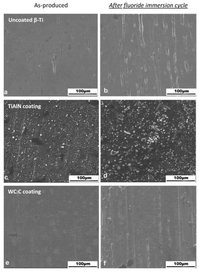 - Krishnan, V.; Krishnan, A.; Remya, R.; Ravikumar, K.; Nair, S.A.; Shibli, S.; Varma, H.; Sukumaran, K.; Kumar, K.J. Development and evaluation of two PVD-coated β-titanium orthodontic archwires for fluoride-induced corrosion protection. Acta Biomater. 2011, 7, 1913–1927. [Google Scholar] [CrossRef]