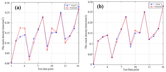 Comparison of the predicted results. (a) Neural network prediction simulation diagram. (b) Genetic algorithm-optimized neural network prediction simulation diagram.
