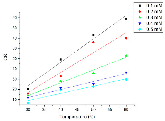 Effect of temperature on CR at different concentrations for an immersion time of 5 h.