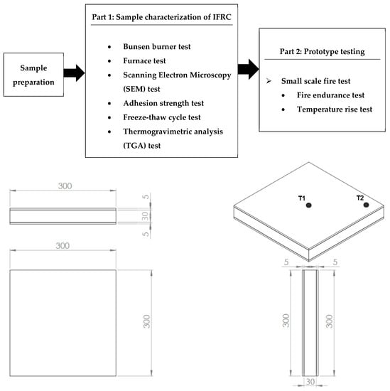 The second part of this project is to design and fabricate the fire-resistant timber door prototype with a dimension of 300 mm (length) × 300 mm (width) × 40 mm (thickness). The fire protective performance of the fire timber door prototype is determined through a small-scale fire test. Table 2 shows the details of the experimental prototypes.