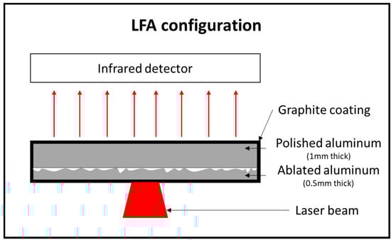 Laser flash analysis (LFA) test was performed by a Netzsch LFA 457 Microflash machine (Selb, Germany) at room temperature. A single flash (0.5 ms) from Nd-Yag laser was irradiated on the untreated surface of the ablated aluminum sample, as illustrated in