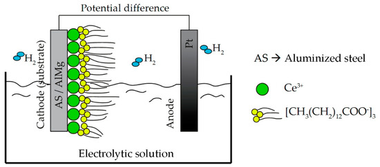 Diagram for the electrodeposition of cerium-based coatings on Al-Mg and AS samples.