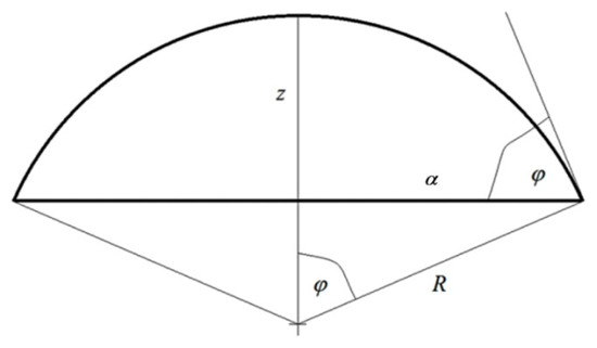 To further simplify the transformations, let us express the volume of liquid in the system as the volume of a sphere with a radius . From the fact that this volume must be equal to the volume of the section of liquid sphere deposited on a solid substrate, we obtain a relationship between the radius of this sphere section and the contact angle :