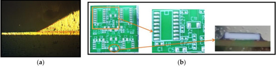 - IPC-TM-650, Method 2.2.5 -Dimensional Inspections Using Microsections. Available online: http://www.flex-plus.com/Upload/%E4%B8%8B%E8%BD%BD%E4%B8%AD%E5%BF%83/IPCTM650-14370777531.pdf (accessed on 20 November 2019).