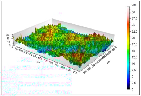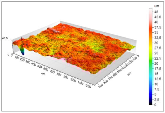 The application of different layers on the aluminum substrate impacts the surface morphology. In our case, the surface roughness (Ra) of the nontreated aluminum substrate equaled 40 nm. However, the application of the epoxy paint reduced it to 26 nm. Finally, the application of our ZnO + ODS solution raised it to 58 nm. This variation of surface roughness illustrated by Figure 4, Figure 5, Figure 6 and Figure 7 corresponds to the different steps of evolution of treated alumina substrate targeting a lotus leaf nanostructure.