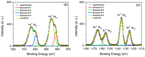 - Xie, H.; Lu, J.; Guan, Y.; Huang, Y.; Wei, D.; Seo, H.J. Abnormal Reduction, Eu3+ → Eu2+, and Defect Centers in Eu3+ -Doped Pollucite, CsAlSi2O6, Prepared in an Oxidizing Atmosphere. Inorg. Chem. 2014, 53, 827–834. [Google Scholar] [CrossRef] [PubMed]