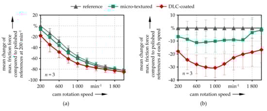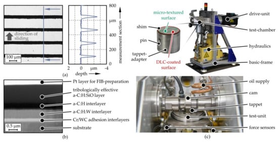 - Dobrenizki, L.; Tremmel, S.; Wartzack, S.; Hoffmann, D.C.; Brögelmann, T.; Bobzin, K.; Bagcivan, N.; Musayev, Y.; Hosenfeldt, T. Efficiency improvement in automobile bucket tappet/camshaft contacts by DLC coatings—Influence of engine oil, temperature and camshaft speed. Surf. Coat. Technol. 2016, 308, 360–373. [Google Scholar] [CrossRef]