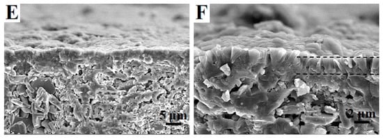 Bilayer zeolite membranes, consisting of a bottom layer and an upper surface layer, are superior to the conventional monolayer zeolite membranes []. Their first critical advantage is the defect-free pinhole feature []. This feature is associated with the upper surface layer, eliminating pinholes in the bottom layer. Moreover, the bottom layer may reduce the thermal stress between the membrane substrate (typically α-Al2O3 ceramic []) and the upper surface layer []. This “weakening” thus avoids thermal cracks, which are commonly recognized as defects in membranes [,]. Another critical advantage of the bottom layer is the depressing by-effect of the membrane substrate on the upper surface layer. One notable example is inhibition of Al release from the α-Al2O3 substrate, which further contributes to the enhancement of hydrophobic of pure silicate zeolite membranes. The bilayer structure is usually realized by tertiary growth of the membrane after the secondary growth with fresh synthesis gel [,]. Several drawbacks of this method were raised, including the renovation of the synthesis gel, messy preparation process, and low conversion to the expected zeolite membrane of gel. Therefore, preparing bilayer zeolite membranes by a facile process while efficiently utilizing the synthesis gel is considered to be necessary from economic, environmental, and efficiency perspectives.