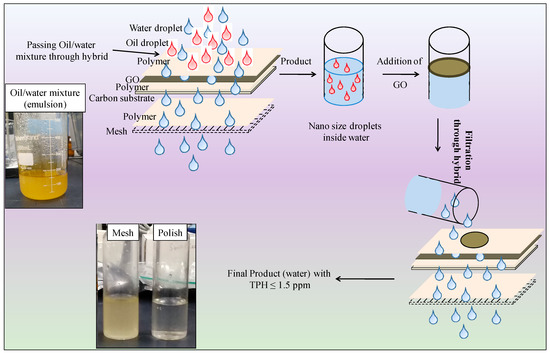 Schematic representation of two-stage process for the separation of oil/ water mixture.