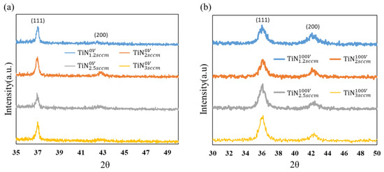 20]. However, for the TiN films that were deposited without bias, the crystallite phenomenon was obvious at a high rate of N