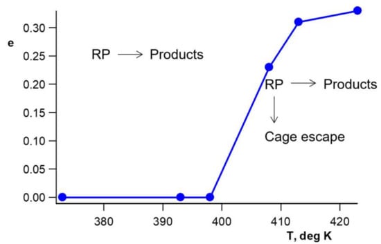 A critical phenomenon takes place: dissociation of RP with a formation of free radicals in the polymer bulk is observed at preheating temperature Tcrit ≈ 403 K and at a higher T; see Figure 6 []: