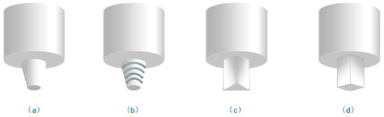 Different shapes of pin: (a) circular; (b) circular with thread; (c) triangular; and (d) square.