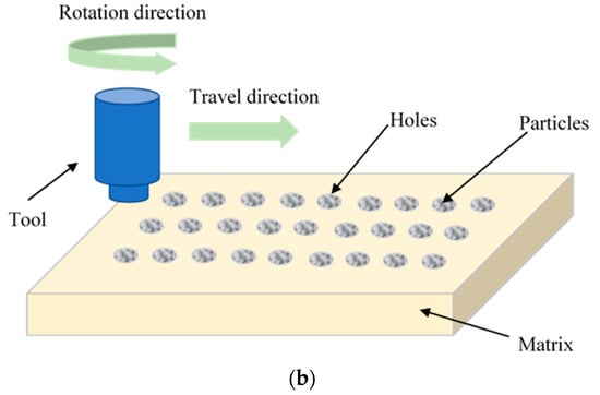 - Sahraeinejad, S.; Izadi, H.; Haghshenas, M.; Gerlich, A.P. Fabrication of metal matrix composites by friction stir processing with different Particles and processing parameters. Mater. Sci. Eng. A Struct. Mater. Prop. Microstruct. Process. 2015, 626, 505–513. [Google Scholar] [CrossRef]