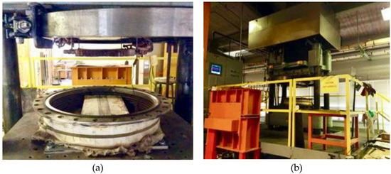 The viscoelastic thermal compression (VTC) was performed in the Green Building Materials Laboratory (GBML) at Oregon State University, Corvallis, OR, USA. The VTC machine is a pressurized vessel that is equipped with a heated hydraulic press (Figure 2).