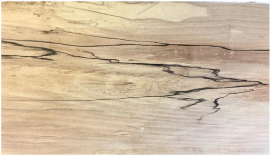 Historically and for much of the 20th century, spalted wood was gathered from forests for use [2,4], as it occurs mostly on dead trees, as the fungi responsible degrade cellulose, hemicellulose, and lignin. Due to the associated decay, spalted wood is often not suitable for load-bearing applications and is used primarily as an embellishment or decorative coating on sound wood. There have been a number of studies devoted to inducing spalting under laboratory conditions—hence minimizing the decay [5], but none of these studies have shown a method to produce spalted wood at a large-scale, commercial rate. Thus, spalted wood remains a market rarity despite its value [1,2,5,6].