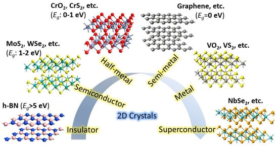 Different atomically thin layered 2D materials with disparate electrical properties (Eg denotes the band gap energy) Reprinted with permission from ref. [20]. Copyright 2014 Society of Photo-Optical Instrumentation Engineers (SPIE).