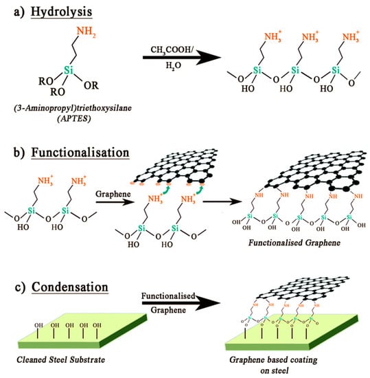 - Raza, M.A.; Rehman, Z.U.; Ghauri, F.A. Corrosion study of silane-functionalized graphene oxide coatings on copper. Thin Solid Films 2018, 663, 93–99. [Google Scholar] [CrossRef]