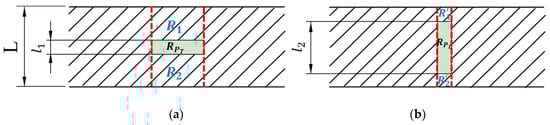 Figure 3a,b represents the schematic of the coating containing a small-horizontal pore and a small-vertical pore. L is the thickness of the material and A1 and A2 are the cross-sectional areas of the small-horizontal and small-vertical pores, respectively. It is assumed that the cross-sectional area A is proportional to the pore length, as the real area is difficult to measure. R1, R2, R1′, and R2′ represent the thermal resistance of the upper and lower part of the pore in the dashed line area, while the thermal resistance of the small-horizontal and small-vertical pores is and .