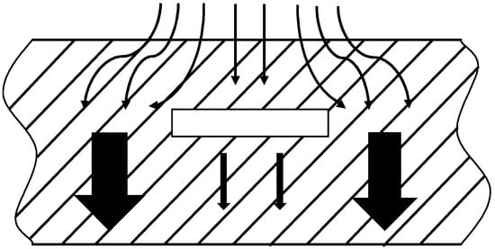 Figure 4. shows the schematic of the heat flux passing through horizontal pores, the arrowhead thickness represents the magnitude of heat flux passing through the area per unit time. According to the Equation (3), the thermal resistance is inversely proportional to the contact area and the thermal conductivity. For λs >> λp, it can be inferred that Rs << Rp. Coating regions with perfect contact are separated by horizontal pores, which have no contact arising from gas entrapped beneath spreading liquid droplets during coating formation. The heat flux is restricted to conduction through the regions of true contact, which refer to solid/solid interface, so that the heat flux is higher compared to the regions possessing pores, which refer to solid/gas contact. The longer the pore transverse length, the more significant the effect.