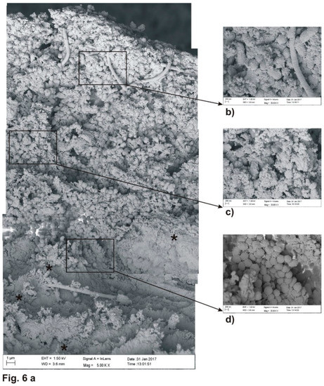 - Jongebloed, W.L.; Stokroos, I.; Van der Want, J.J.; Kalicharan, D. Non-coating fixation techniques or redundancy of conductive coating, low kV FE-SEM operation and combined SEM/TEM of biological tissues. J. Microsc. 1999, 193, 158–170. [Google Scholar] [CrossRef] [PubMed]
