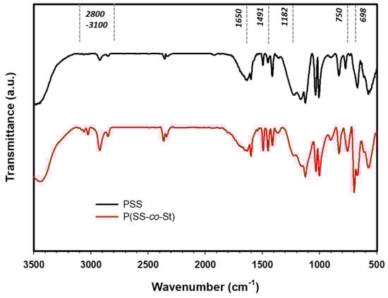 FT–IR spectra of PSS and P(SS-co-St) polymers.