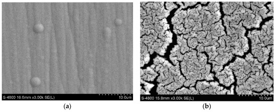 The surfaces were morphologically and compositionally characterized by a scanning electron microscope (SEM, Hitachi FEG-SEM S4800, Tokyo, Japan) equipped with energy dispersive X-ray spectroscopy (EDX) detector. The crystallographic structure of the obtained coatings is studied by X-ray diffractometry (Rigaku MiniFlex II, Cu Kα radiation, 30 kV, 30 mA, Tokyo, Japan). The mean crystallite size was estimated based on the peak width and position using Scherrer’s equation.