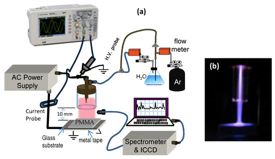 - Kostova, K.G.; Nishime, T.M.C.; Castro, A.H.R.; Toth, A.; Hein, L.R.D.O. Surface modification of polymeric materials by cold atmospheric plasma jet. Appl. Surf. Sci. 2014, 314, 367–375. [Google Scholar] [CrossRef]