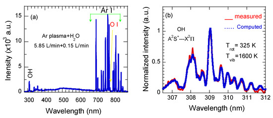 - Abdel-Fattah, E.; Bazavan, M.; Shindo, H. Temperature measurements in microwave argon plasma source by using overlapped molecular emission spectra. Phys. Plasma 2015, 22, 093509. [Google Scholar] [CrossRef]