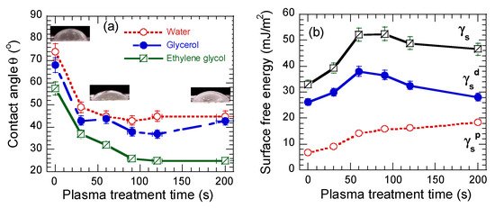 - Huang, C.; Chang, Y.C.; Wu, S.Y. Contact angle analysis of low temperature cyclonic atmospheric pressure plasma modified polyethylene terephthalate. Thin Solid Films 2010, 518, 3575–3580. [Google Scholar] [CrossRef]