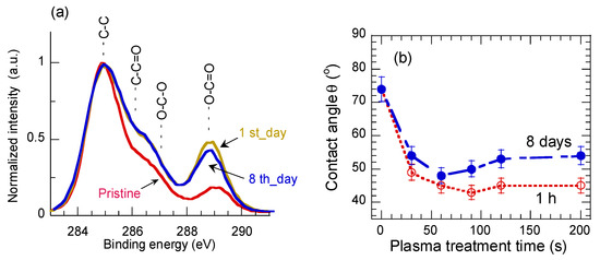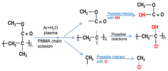 - Vesel, A.; Mozetic, M. Surface modification and ageing of PMMA polymer by oxygen plasma treatment. Vacuum 2012, 86, 634–637. [Google Scholar] [CrossRef]