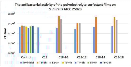 Gîfu, I.C.; Maxim, M.E.; Cinteza, L.O.; Popa, M.; Aricov, L.; Leontieș, A.R.; Anastasescu, M.; Anghel, D.-F.; Ianchis, R.; Ninciuleanu, C.M.; et al. Antimicrobial Activities of Hydrophobically Modified Poly(Acrylate) Films and Their Complexes with Different Chain Length Cationic Surfactants. Coatings 2019, 9, 244. https://doi.org/10.3390/coatings9040244