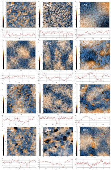 3.3. The Morphology of the Films after Exposure to Bacterial Media