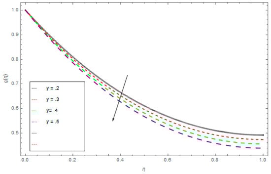 The influence of γ on g(η) when Ω = 1, ρ = 1, σ = 0.5, k = 1, M = 1.