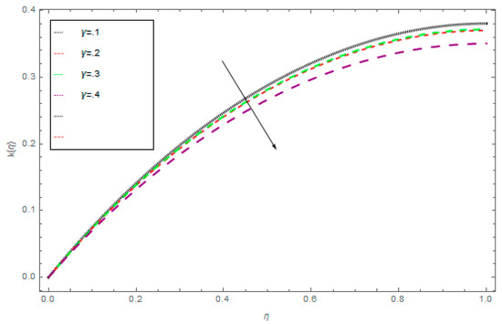 The influence of γ on k(η) when Ω = 1, ρ = 1, σ = 0.5, k = 1, M = 1.