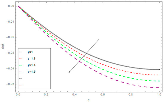 The influence of γ on s(η) when Ω = 1, ρ = 1, σ = 0.5, k = 1, M = 1.