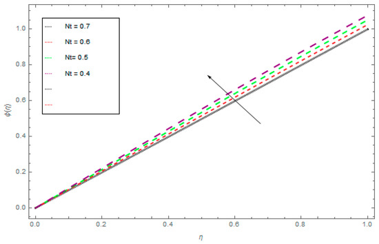 The influence of Nt on ϕ(η) when Nb = 0.6, Sc = 0.7, S = 0.7.