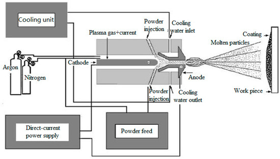 Schematic diagram of plasma spraying [43]. Reprinted with permission from reference [43] 2012 Elsevier.