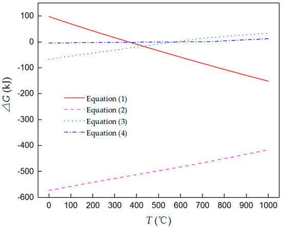 Chemical reactions involved in the powder thermal diffusion alloying process of our work are shown below. The Gibbs energies of these chemical reactions are shown in Figure 5.