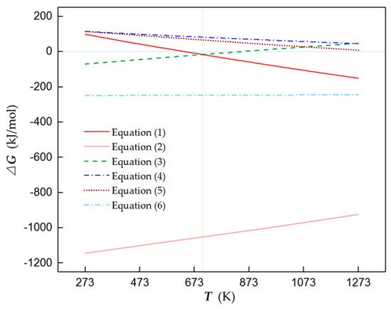 The Gibbs free energies of relative chemical equations are shown in Figure 8. It could be found that most of the chemical equations are preferred, except Equations (4) and (5). Although pure liquid Mg and pure solid Mg both have difficulty becoming pure gaseous Mg in the thermal calculations which describe the preference of reactions under ideal conditions as shown in Figure 8, the Gibbs energies of Equations (4) and (5) may change in a real sophisticated diffusion alloying system. In fact, these reactions are reported in some literatures [25,26]. The existence of Al and Zn both in the intermetallic melt and in the magnesium alloy matrix could affect the evaporation of liquid Mg and the sublimation of solid Mg. It could be easier for an Mg atom in the liquid or solid phase in the magnesium alloy surface to become an Mg atom in the gaseous phase, considering that the melting point of Mg could be reduced by adding Al and Zn into the Mg solid solution.