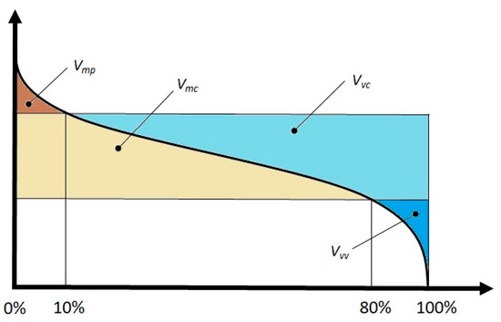 Graphical representation of the volume parameters with respect to the Abbott–Firestone curve.