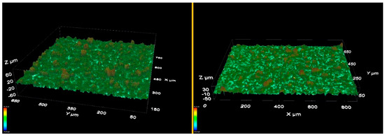Three-dimensional (3D) profilometer images of a sample used for the corrosion campaign. Left—before immersion, right—after immersion.